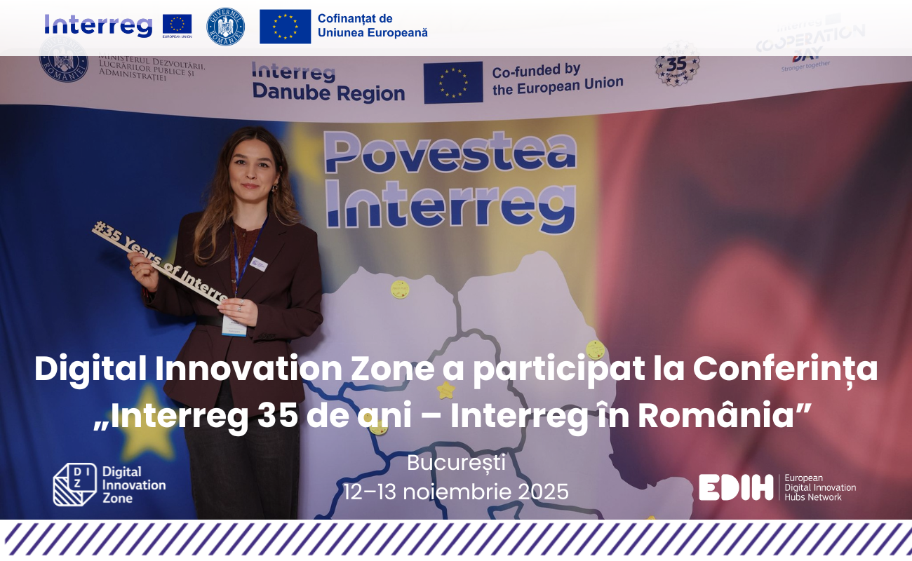 În perioada 12–13 noiembrie 2025 Digital Innovation Zone, prin intermediul colegei noastre Irina Robuleț – Consultant Finanțări Nerambursabile DIZ, a luat parte la evenimentul dedicat aniversării a 35 de ani de colaborare europeană prin programul Interreg.