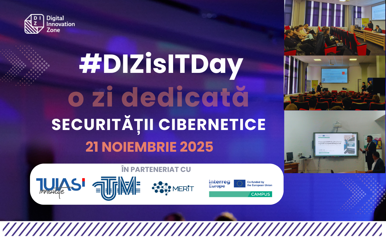 On Friday, 21 November 2025, the “Gheorghe Asachi” Technical University of Iași (TUIASI) hosted #DIZisITDay, an event dedicated to cybersecurity and digital innovation, organized by Digital Innovation Zone EDIH (DIZ), TUIASI, and the Technical University of Moldova (UTM).
