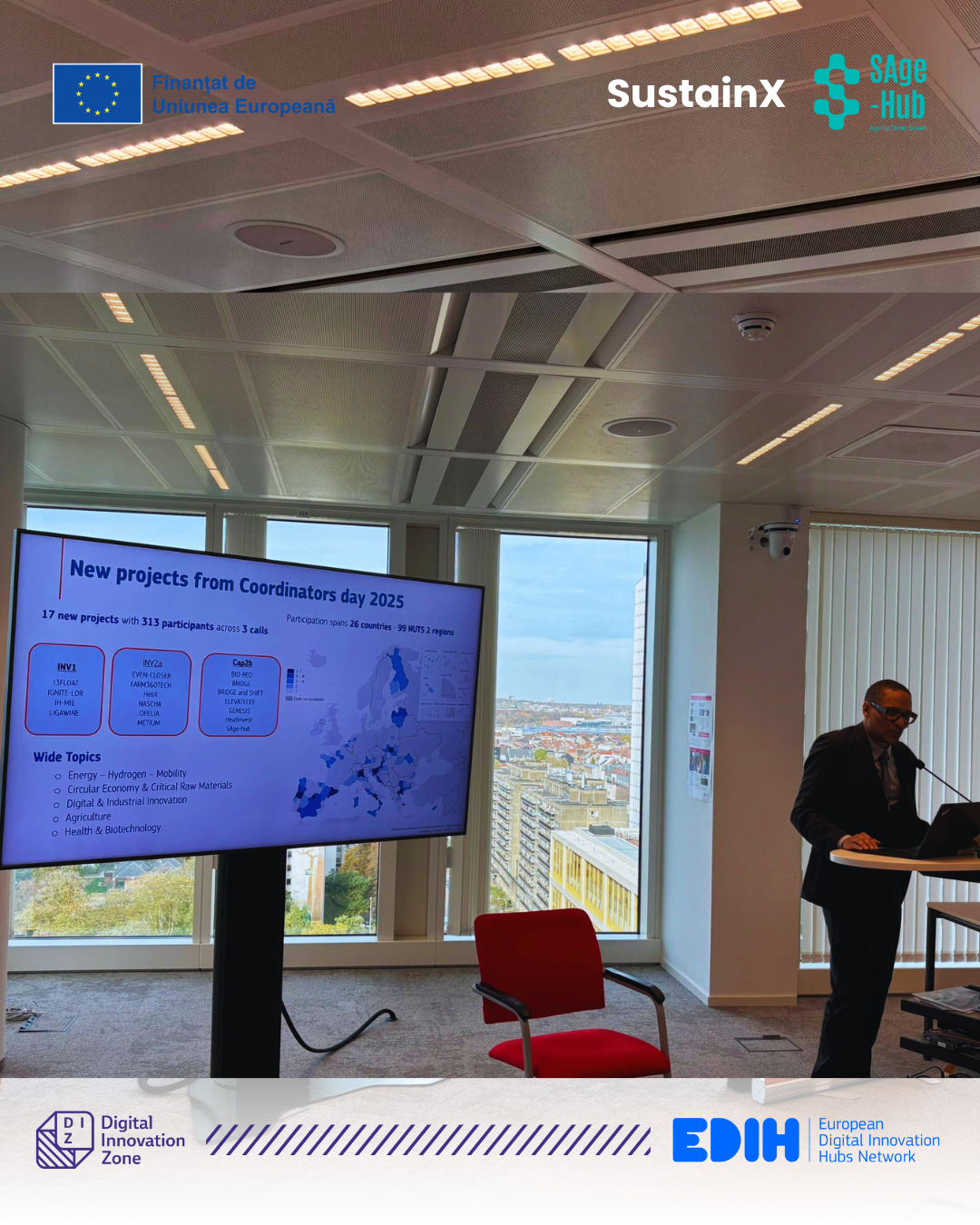 Această arhitectură de parteneriat este fundamentul din care au crescut și proiectele SustainX și SAge-Hub, descrise în prezentare ca „două piese ale aceluiași puzzle” de investiții interregionale în inovare.