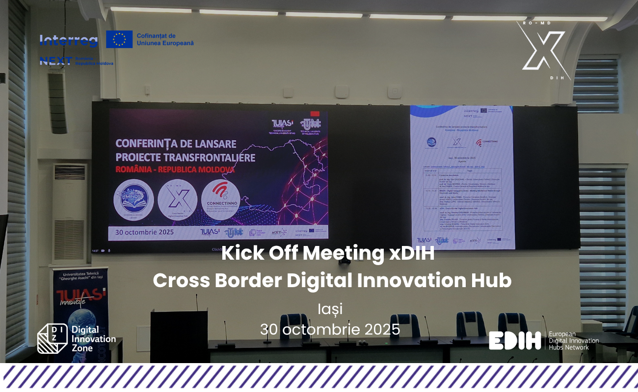 Joi, 30 octombrie 2025, Universitatea Tehnică „Gheorghe Asachi” din Iaşi (TUIASI), a găzduit lansarea oficială – Kick Off Meeting-ul programului xDIH – Cross Border Digital Innovation Hub.