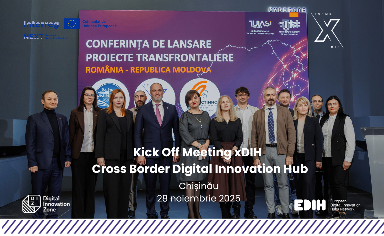 Proiect finanțat din Programul Interreg NEXT Programme Romania-Republic of Moldova – număr proiect ROMD00134 – Denumire proiect: XDIH Cross-border Digital Innovation Hub.